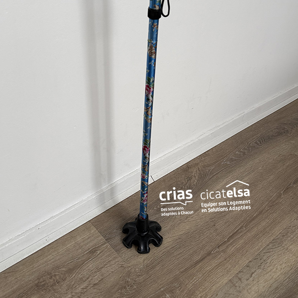 L'embout se fixe à l'extrémité de la canne, en remplacement de l'embout standard. Il assure un meilleur équilibre pendant la marche. Son but est également de maintenir la canne à la verticale lorsque la personne ne s’en sert plus, évitant ainsi qu'elle ne tombe et que l'utilisateur ne soit contraint de se baisser pour la ramasser. Il est compatible avec la majorité des modèles de cannes.