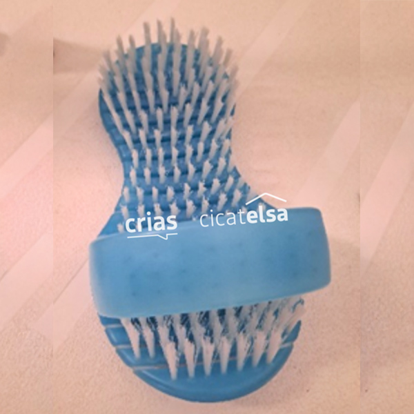 La brosse lave pied se fixe avec des ventouses au sol de la baignoire ou de la douche afin de permettre de se laver les pieds sans se baisser.